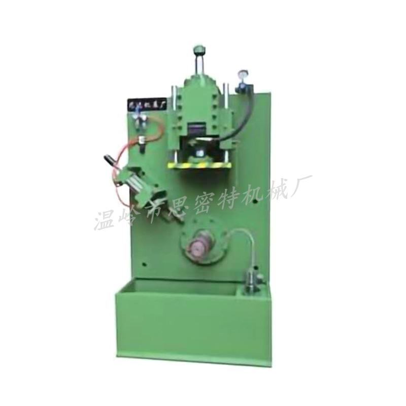 立式輪輻旋壓機,包括橫向油(yóu)缸(gāng)、下主軸、封(fēng)閉力係、皮帶輪、縱向油缸、卸料月牙板、縱向滑板、操作係統、仿形板、仿形閥(fá)、旋輪軸承室、初旋輪、壓緊油缸、上主軸箱、卸料導向杆、精旋輪、輪輻模芯、自動進料裝置、橫向滑(huá)板、電機、電動(dòng)出(chū)料滾道,其特征在於:所述(shù)封閉力係(xì),包括機座(zuò)、立柱、活動(dòng)梁、頂梁,其一側設有自動(dòng)進料裝置,另一側設有電動出料滾道;所述精旋輪(lún)和(hé)初旋輪由縱向油缸(gāng)、縱向滑板、橫向油缸、旋輪軸承(chéng)室和橫(héng)向滑板帶動完成設計曲線運動;所述(shù)仿形閥通過仿形板的形(xíng)狀控(kòng)製橫向油缸和縱向油缸(gāng)的運動軌跡,並與相應形狀的輪輻模(mó)芯結合。該立式輪輻旋壓機,提高輪輻性能,延長壽命,保障行車安全。